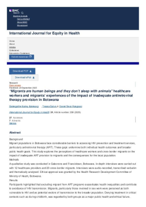 “Migrants are human beings and they don’t sleep with animals” healthcare workers and migrants’ experiences of the impact of inadequate antiretroviral therapy provision in Botswana