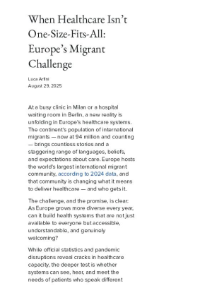 As Europe grows more diverse every year, can it build health systems that are not just available to everyone but accessible, understandable, and genuinely welcoming? This article explores the challenges migrants face in accessing care, from language and cultural barriers to gaps in provider training, and highlights the need for truly inclusive healthcare.